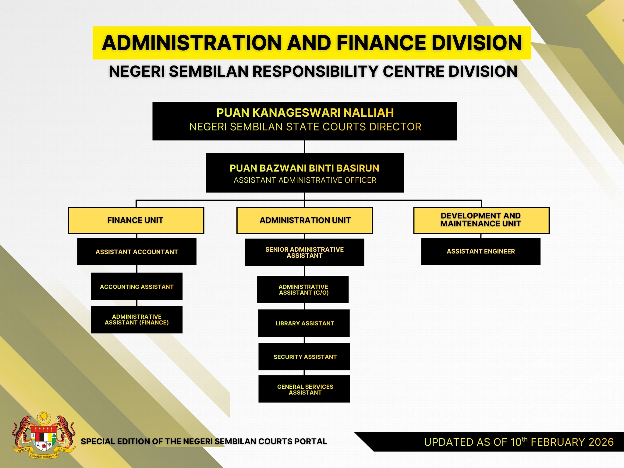 - Manage leave and service record books for Negeri Sembilan Court officers and staff.