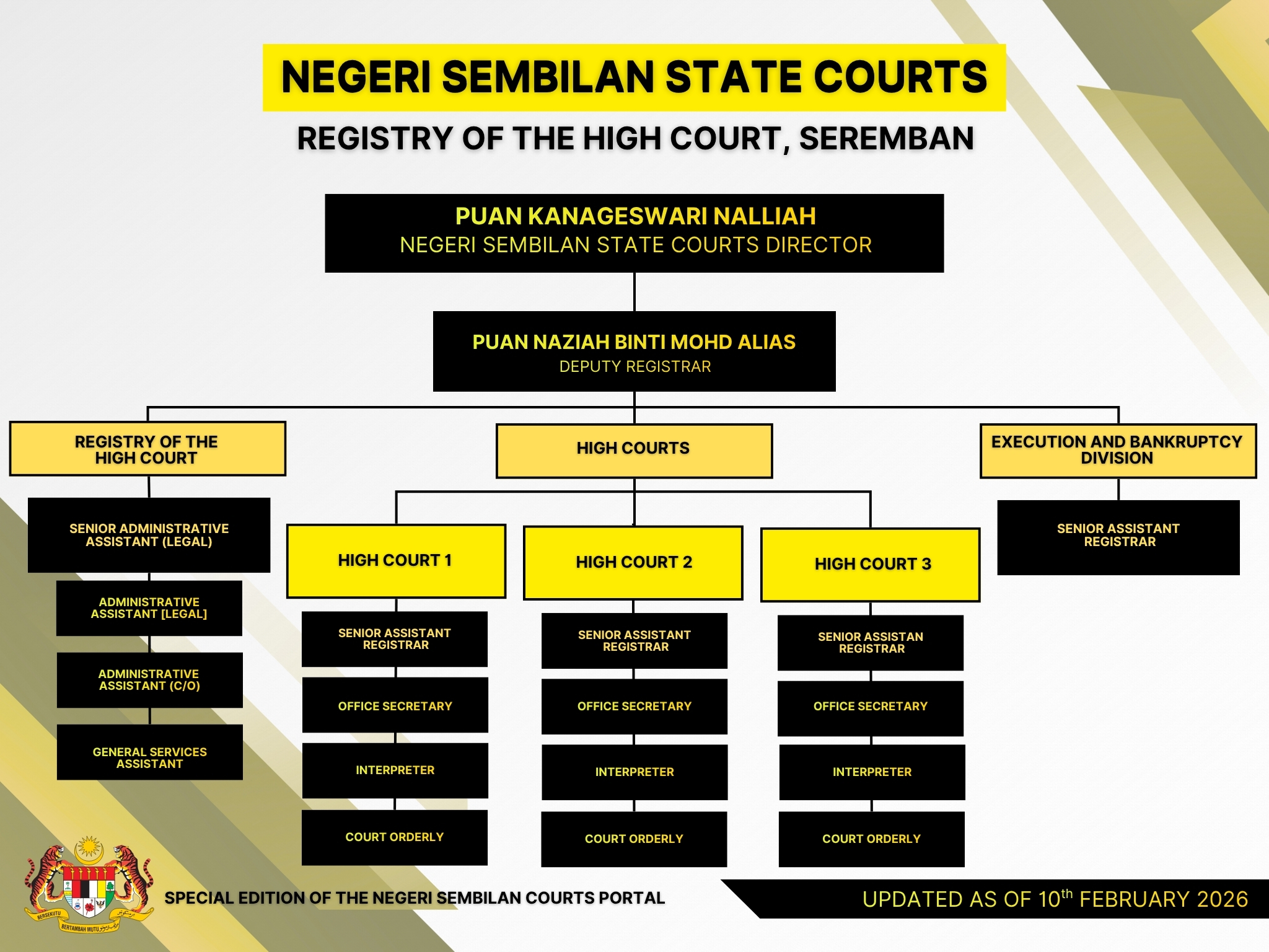 - Responsible for regulating the registration of civil cases at the Seremban High Court.